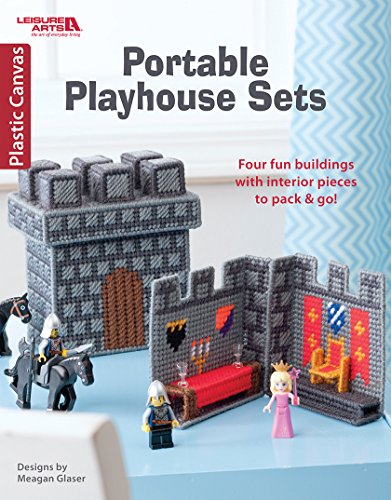 With Portable Playhouse Sets in Plastic Canvas from Leisure Arts, kids can let their imaginations run free. Four cute sets by Meagan Glaser include Cottage, Barn, Castle, and Burger Shop. Each set includes a box-like exterior building and an interior section that lifts out and has furniture and other accessories; the scenes can be brought to life when kids add their favorite toy people and animals. Removable roofs let the playhouses be packed up to hold all their pieces neatly inside for traveling or storage. The designs are stitched on 7-mesh plastic canvas with medium weight yarn.From reader reviews: